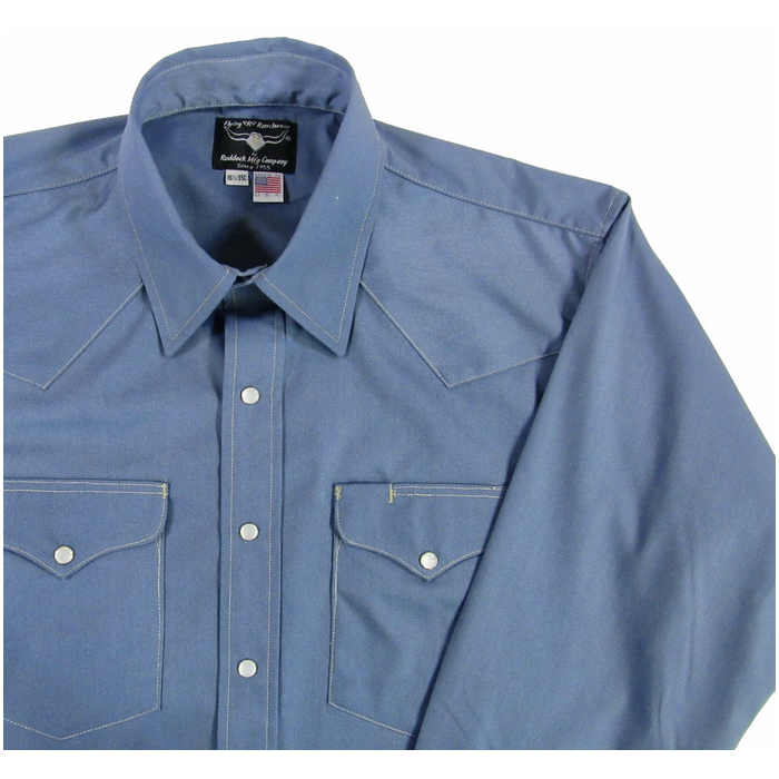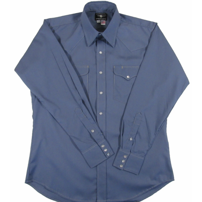 The Blazer solid is perfect for work, whether indoors or out. Blazer Solids are dress shirts you'd wear with a sport coat or vest. Made of fine, 100% cotton in dress shirt fabric like French twill or dress poplin. The Cadet Blue Dress Poplin is soft and has a fine luster of high end fabric. The contrast stitching adds a bit of excitement to the look!