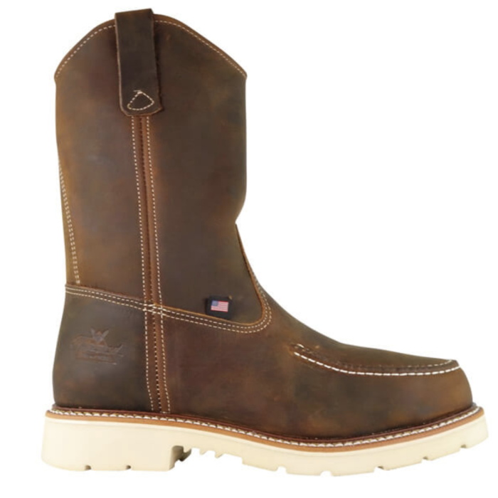 You’ve found the ultimate in comfort, support, and protection in our American Heritage 11″ Trail Crazyhorse safety toe moc toe pull-on Wellington work boots. These slip-on steel toe boots go on easily, taking away a little of the stress and strain in your life. Plus, with no laces on the high composite shank, full-grain leather, and Goodyear welt construction, there’s less risk of moisture getting into your boots. Inside, we’ve combined our cushioned insole and shock-absorbing footbed to give you the comfort you need to keep going all day long. And your feet stay planted firmly on the ground with the MAXWear 90™ outsole.