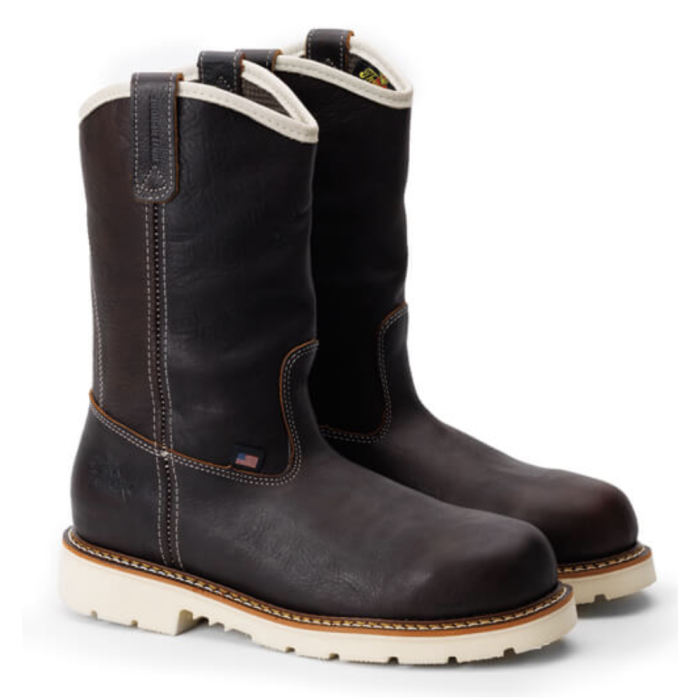 Thorogood’s American Heritage Wellington-style work boots are designed to keep you safe and comfortable on the job for years to come. Made from durable materials with storm welt construction and a rugged MaxWear 90° outsole, these boots will keep working as long as you do. No matter the hazards of the job at hand, a steel safety toe, EH (electrical hazard) protection, plus oil and slip resistance have you covered. To keep you comfortable during long shifts, they’re also built with a removable ultimate shock-absorbing insole.