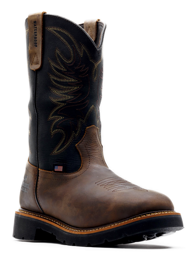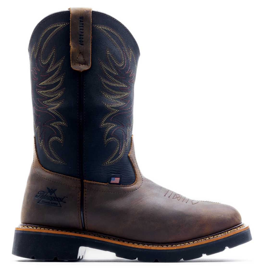 Who wants to change boots between work and a night out? No one, but traditional work boots don’t come with the comfort or style needed to go from swinging tools to swing dancing. That’s why we created the Thorogood Work Western 11″ black and Crazy Horse waterproof Wellington work boots with a non-safety toe. You’ll have the comfort you need with full-grain leather materials, an 11-inch shaft, and waterproof construction, and a slip-resisting and oil-resisting Wyatt90 outsole. Thorogood Boots are meticulously crafted using top-quality American leathers, ensuring both style and durability that can withstand the rigorous demands of today’s job-sites. Inside, our Ultimate Shock Absorption™ footbed gives you that added softness that keeps you on your feet all day long. In these work boots, you’ll have tons of toe space with our soft toe design! Even with a little mud on your boots, you can still head uptown tonight in these good lookin’ boots.