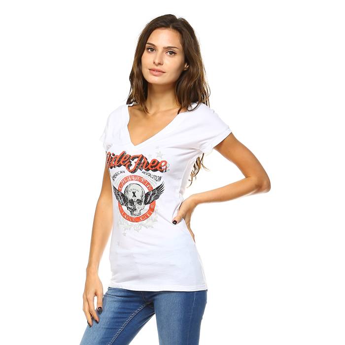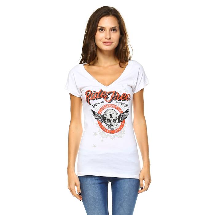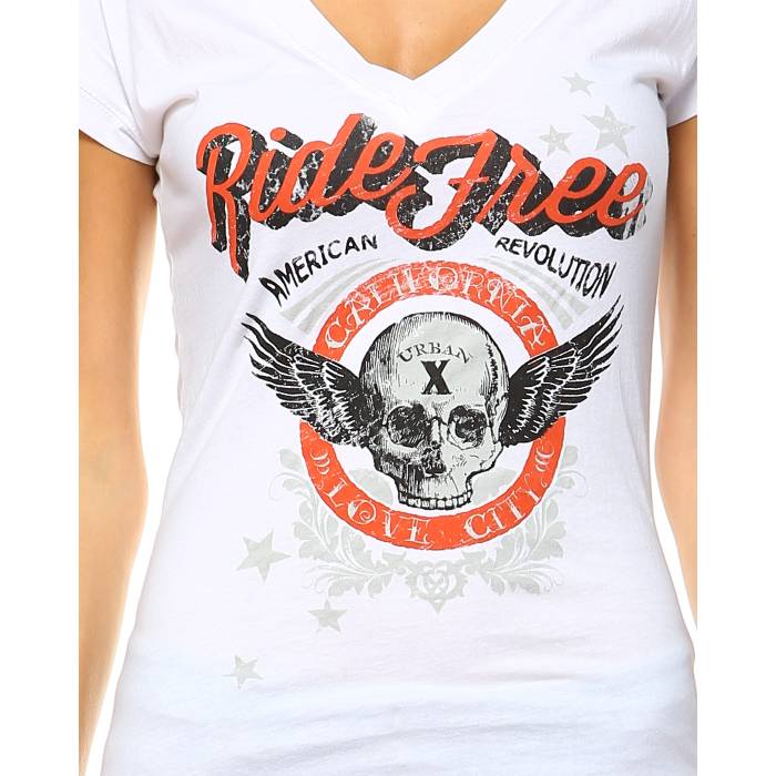 V-neck Short sleeve Graphic tee w/ Ride Free Urban City design