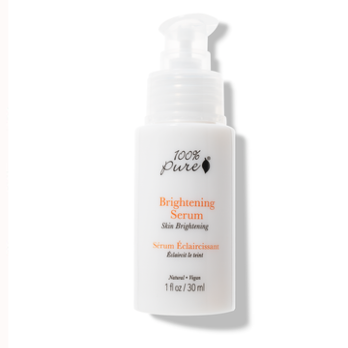 Skin brightening serum enlivens dull looking complexions for a luminous complexion. Rather than using harsh chemical skin lighteners, this 100% Pure formula gets its brightening effect from all natural, gentle ingredients like bearberry, kojic acid, sake, fruit acids, licorice, vitamin C, lemon juice and strawberries.