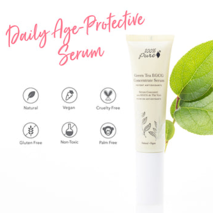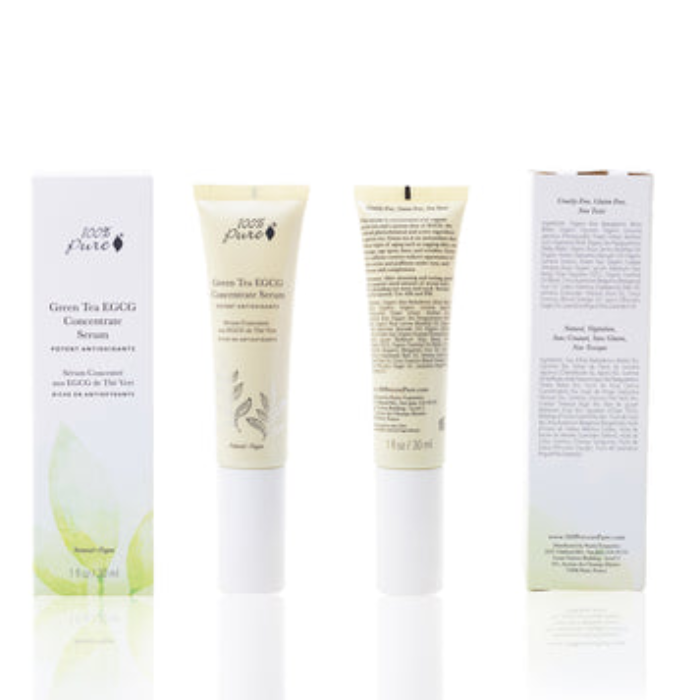 This serum is concentrated with organic green tea and a potent dose of EGCG, the critical phytochemical and active ingredient in green tea. Green tea is an antioxidant that delays signs of aging such as sagging skin, sun damage, age spots, lines, and wrinkles. Green tea's caffeine content reduces appearance of dark circles and puffiness under eyes, and enlivens dull complexions.