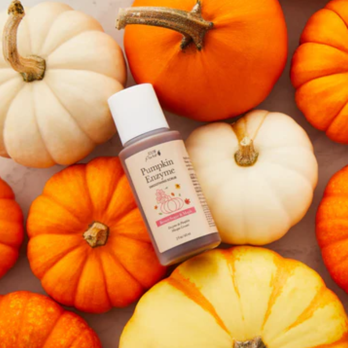 Highly enzymatic facial scrub buffs away dullness for a healthy, glowing, radiant complexion. Pumpkin, Papaya, Pineapple enzymes, Maple AHA and Beet lactic acid brightens and renews, leaving your complexion super soft and smooth. Restorative pumpkins are rich with Vitamins A, B, C, E and antioxidants to reverse UV damage and stimulate collagen/elastin for increased firmness and elasticity.