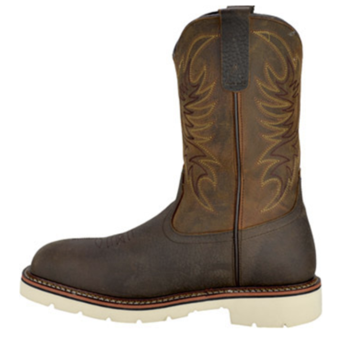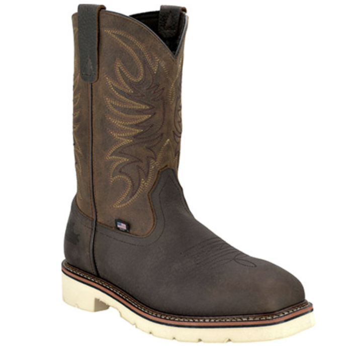 Pull on a stylish pair of work boots that delivers trusted performance with American Heritage 11″ Crazyhorse & Pebble Brown Wellington work boots from Thorogood. On the outside, you’ll enjoy the great design of the three-tone decorative shaft stitching on the Trail Crazyhorse full-grain leather upper, with a Pebble brown leather bottom. But these Wellington work boots don’t just look good – they’re made for the tough jobs. With an 11-inch shaft that covers your ankle and lower legs, you’ll have added protection; convenient pull loops make these boots easy to pull on when you’re ready to go. The Wyatt90 outsole is oil- and slip-resisting, to help keep you on your feet. Plus, with an Ultimate Shock Absorption™ footbed on Poron® comfort cushion insole, you’ll face those long days in comfort. Look great and feel great, no matter where your boots take you.