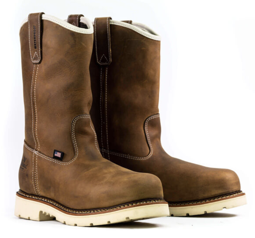 Designed with comfort and performance in mind, the American Heritage Series 11″ Trail Crazyhorse safety toe waterproof Wellington boots will help you get the job done. These work boots are made with durable full-grain leather and have a waterproof membrane inside to keep your feet dry and protected. They’re easy to pull on and off, with convenient tabs to help you keep your grip. And speaking of grips, the MAXWear 90™ slip resistant outsole gives you added traction on wet grass and mud. With steel toe protection, these waterproof Wellington boots deliver the added safety you need on the job, combined with the comfort and durability you expect from Thorogood.