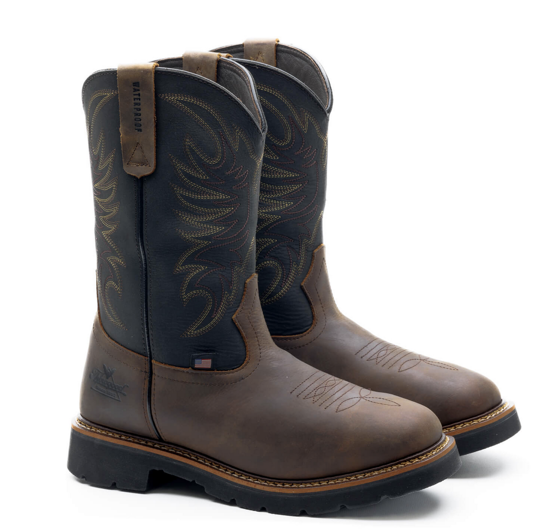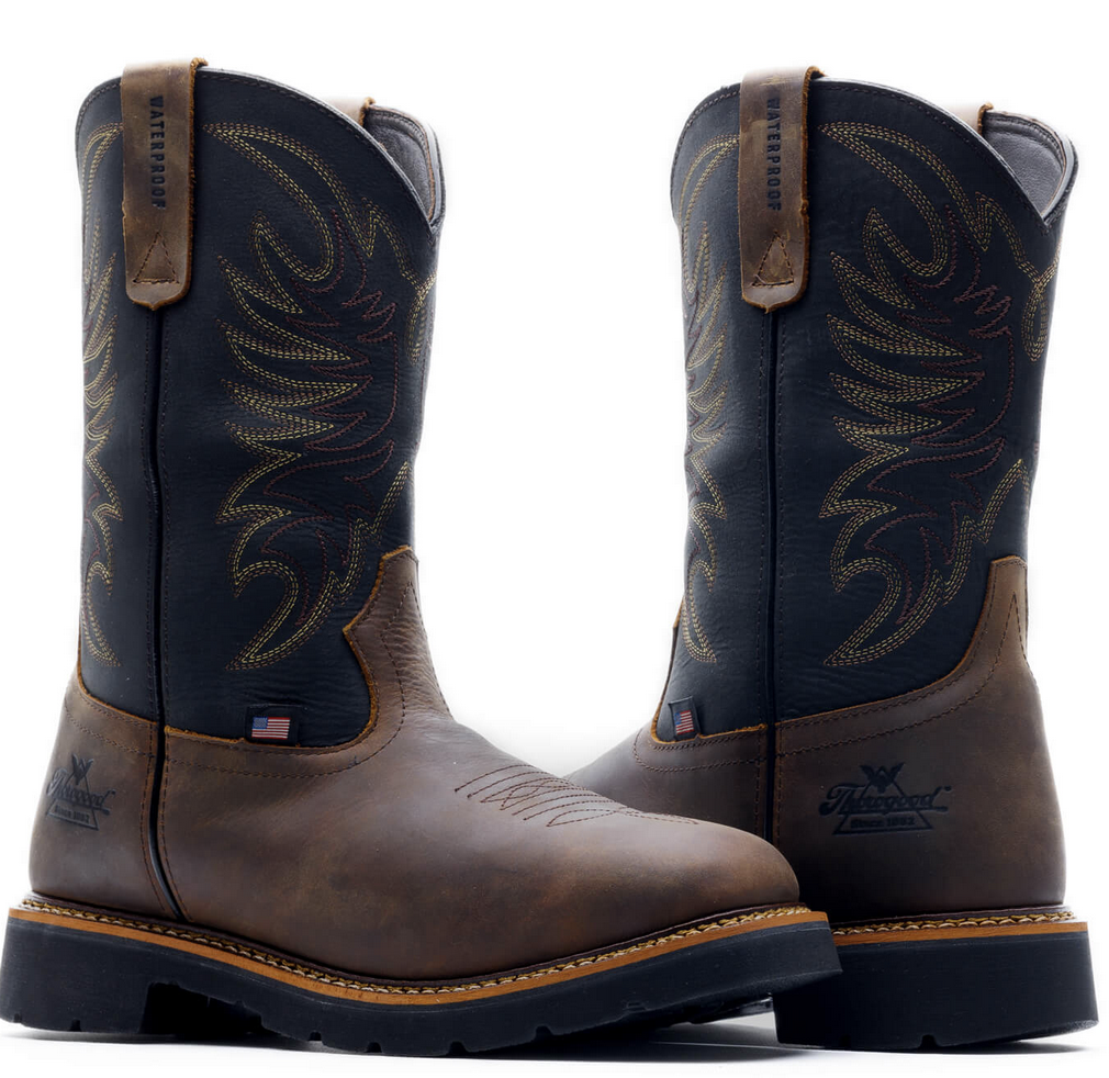 Who wants to change boots between work and a night out? No one, but traditional work boots don’t come with the comfort or style needed to go from swinging tools to swing dancing. That’s why we created the Thorogood Work Western 11″ black and Crazy Horse waterproof Wellington work boots with a non-safety toe. You’ll have the comfort you need with full-grain leather materials, an 11-inch shaft, and waterproof construction, and a slip-resisting and oil-resisting Wyatt90 outsole. Thorogood Boots are meticulously crafted using top-quality American leathers, ensuring both style and durability that can withstand the rigorous demands of today’s job-sites. Inside, our Ultimate Shock Absorption™ footbed gives you that added softness that keeps you on your feet all day long. In these work boots, you’ll have tons of toe space with our soft toe design! Even with a little mud on your boots, you can still head uptown tonight in these good lookin’ boots.